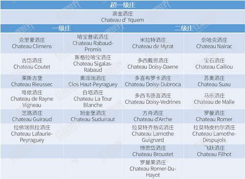 1855年苏玳和巴萨克官方评级