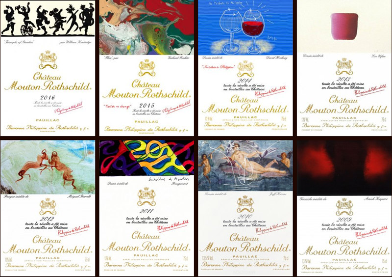 不同年份的木桐酒标(图片来源:www.chateau-mouton-rothschild.com)