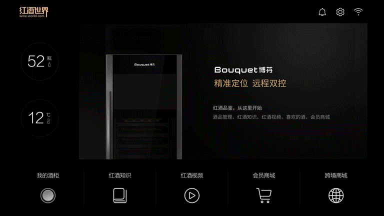 博芬智能酒柜上线了红酒世界会员商城和跨境商城,全球千款美酒实时同步,只需要轻触大屏,即可知晓酒品详细信息,遇到心仪的美酒,还可以直接在酒柜上搜索查询、下单购买,实现葡萄美酒“一遇便可求”。